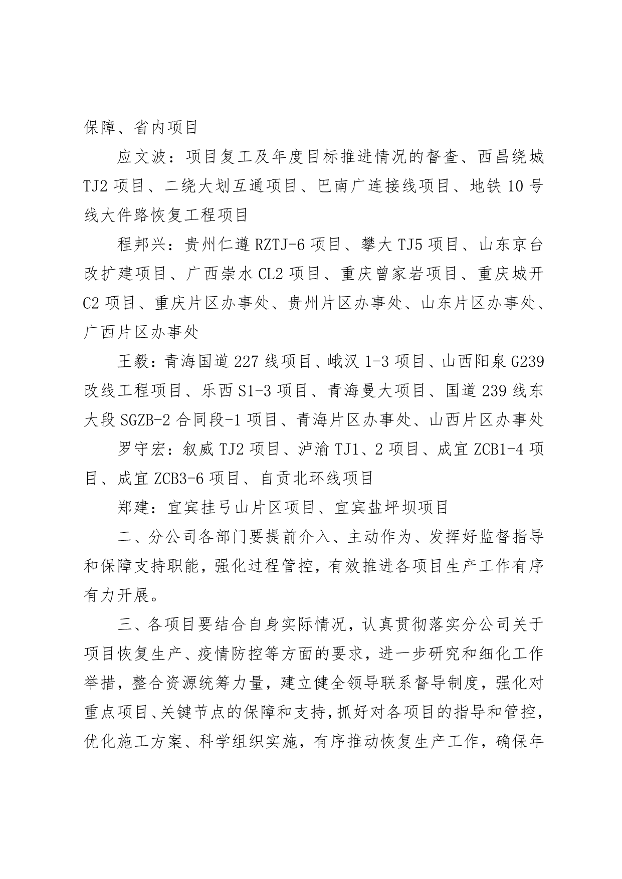 关于项目复工及确保年度目标完成实施领导联系督导制度的通知