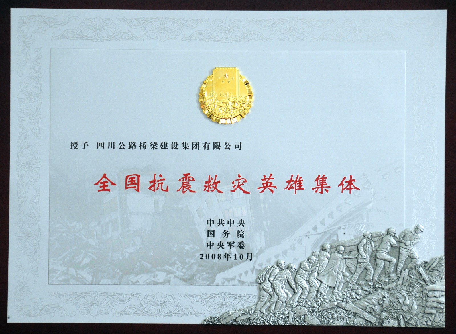 • 抗震救灾英雄集体荣誉奖牌