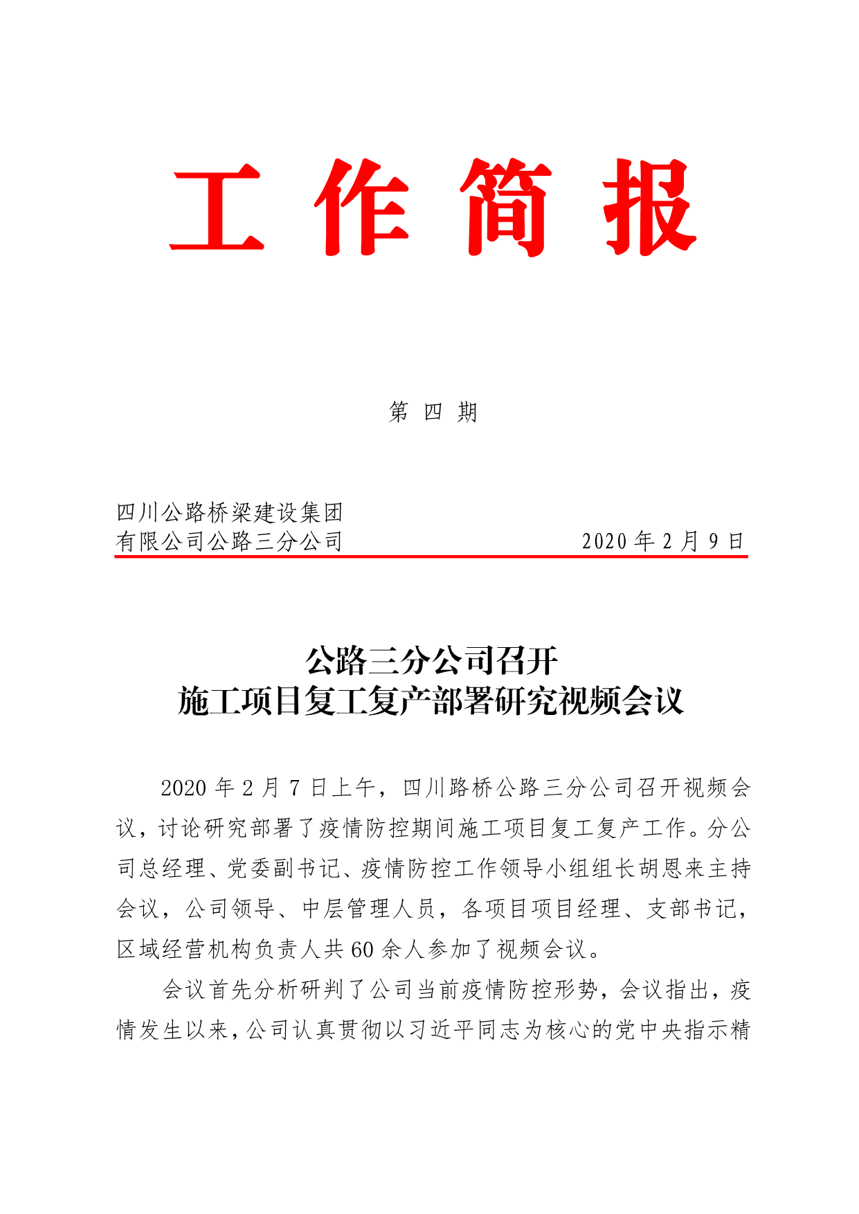 公路三分公司召开施工项目复工复产部署研究视频会议