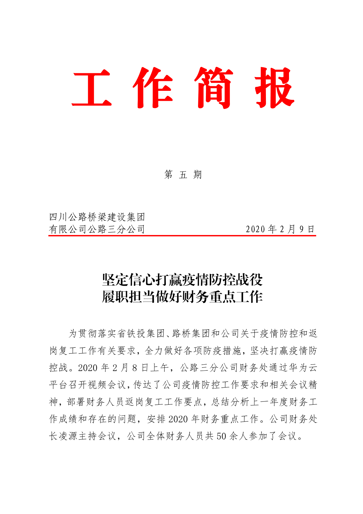 坚定信心打赢疫情防控战役履职担当做好财务重点工作