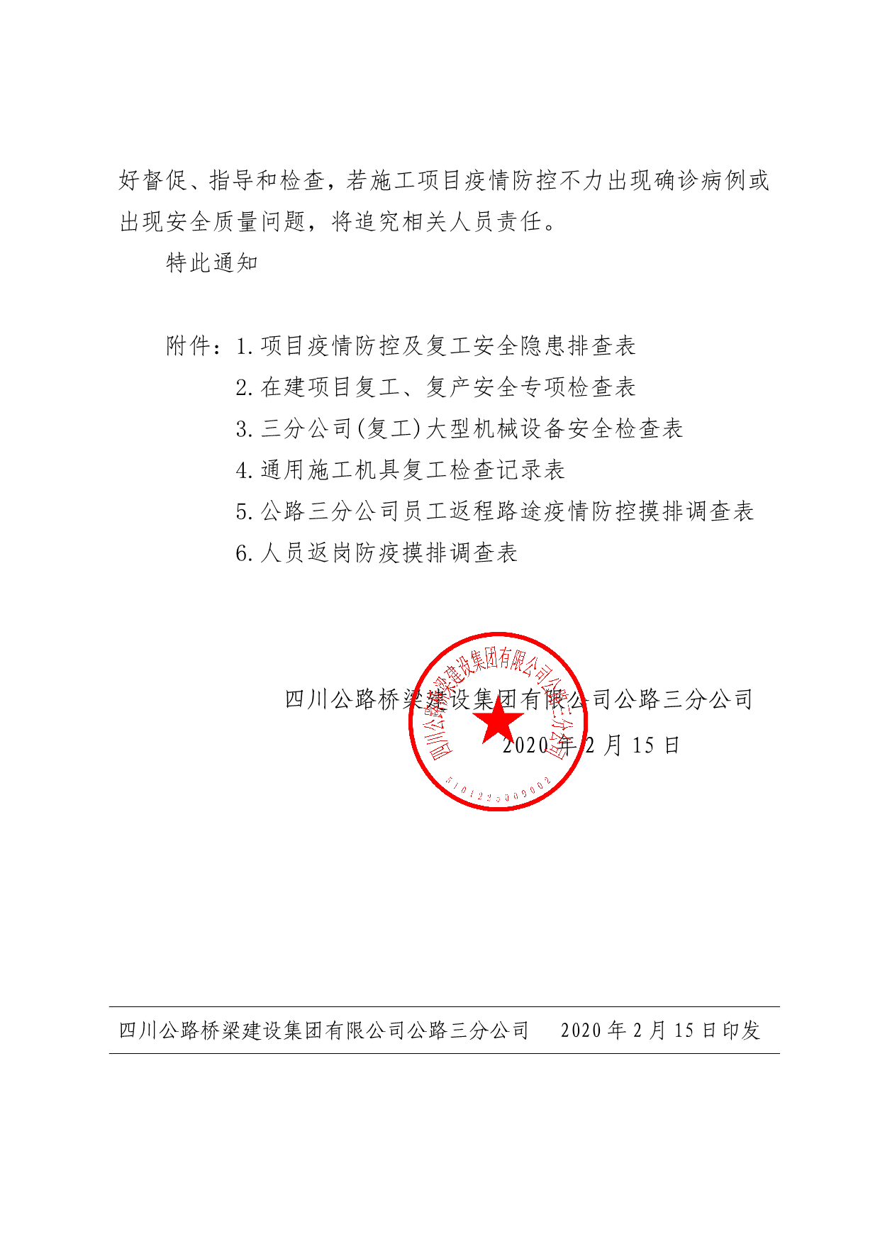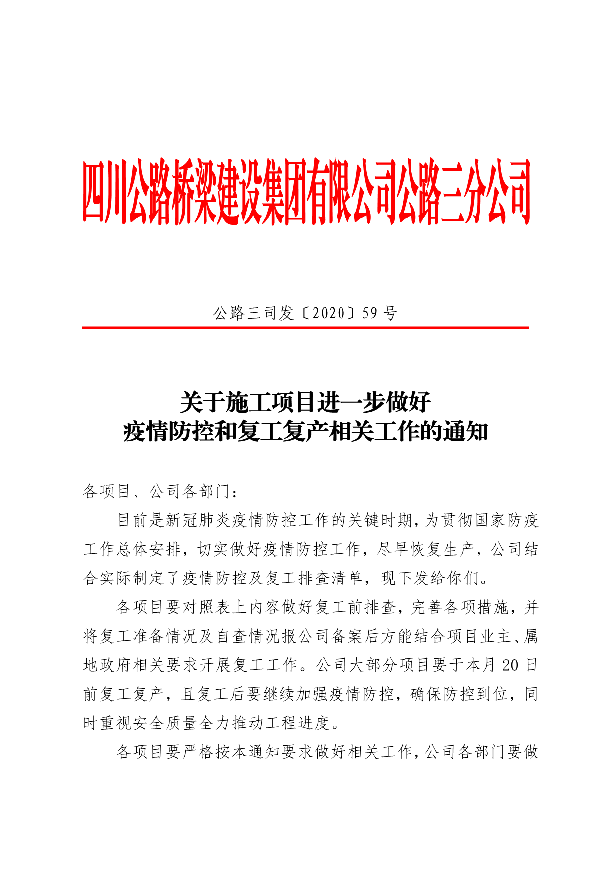关于施工项目进一步做好疫情防控和复工复产相关工作的通知