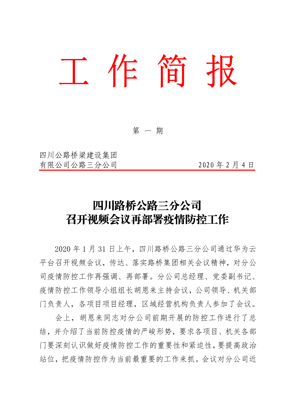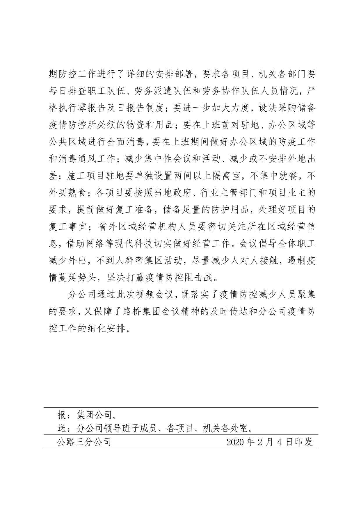 四川路桥公路三分公司召开视频会议再部署疫情防控工作